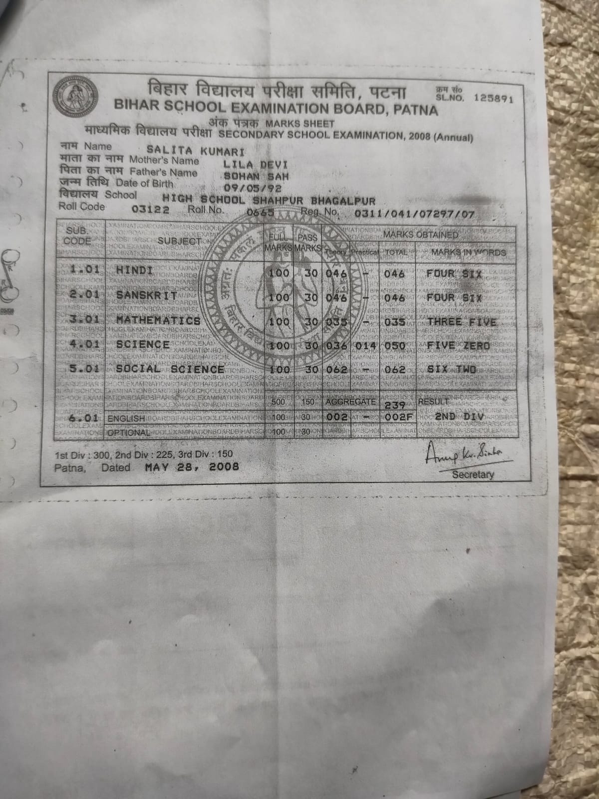 | Exam | Full Marks | Pass Marks | Marks Obtained |