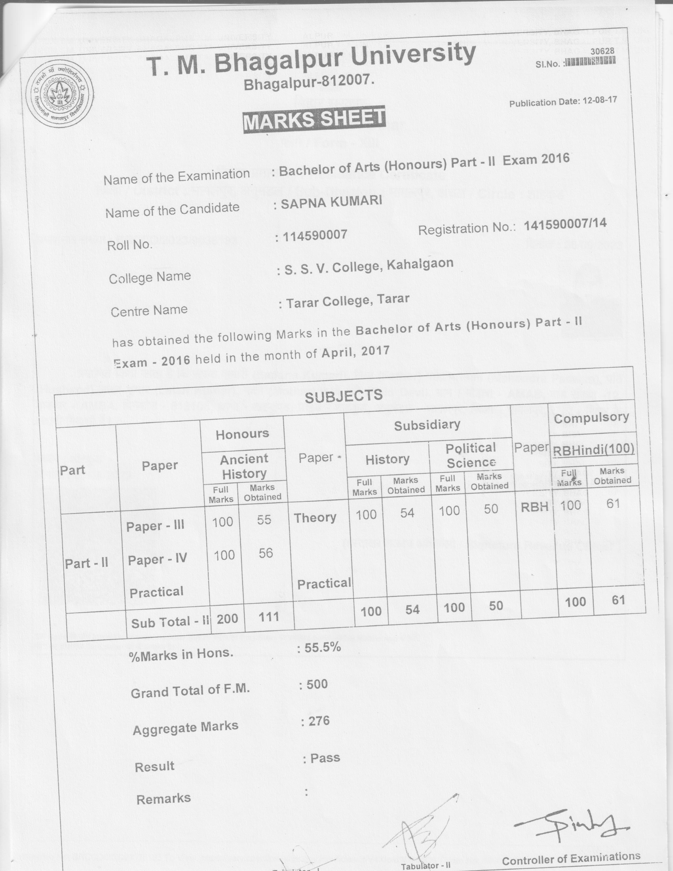 | Exam | Full Marks | Pass Marks | Marks Obtained |
