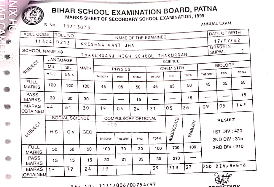 | Exam | Full Marks | Pass Marks | Marks Obtained |
