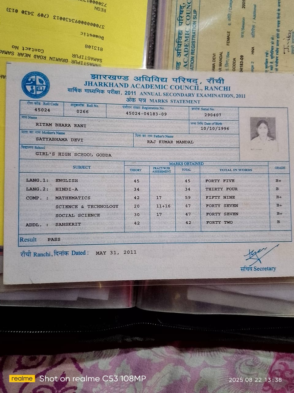 | Exam | Full Marks | Pass Marks | Marks Obtained |