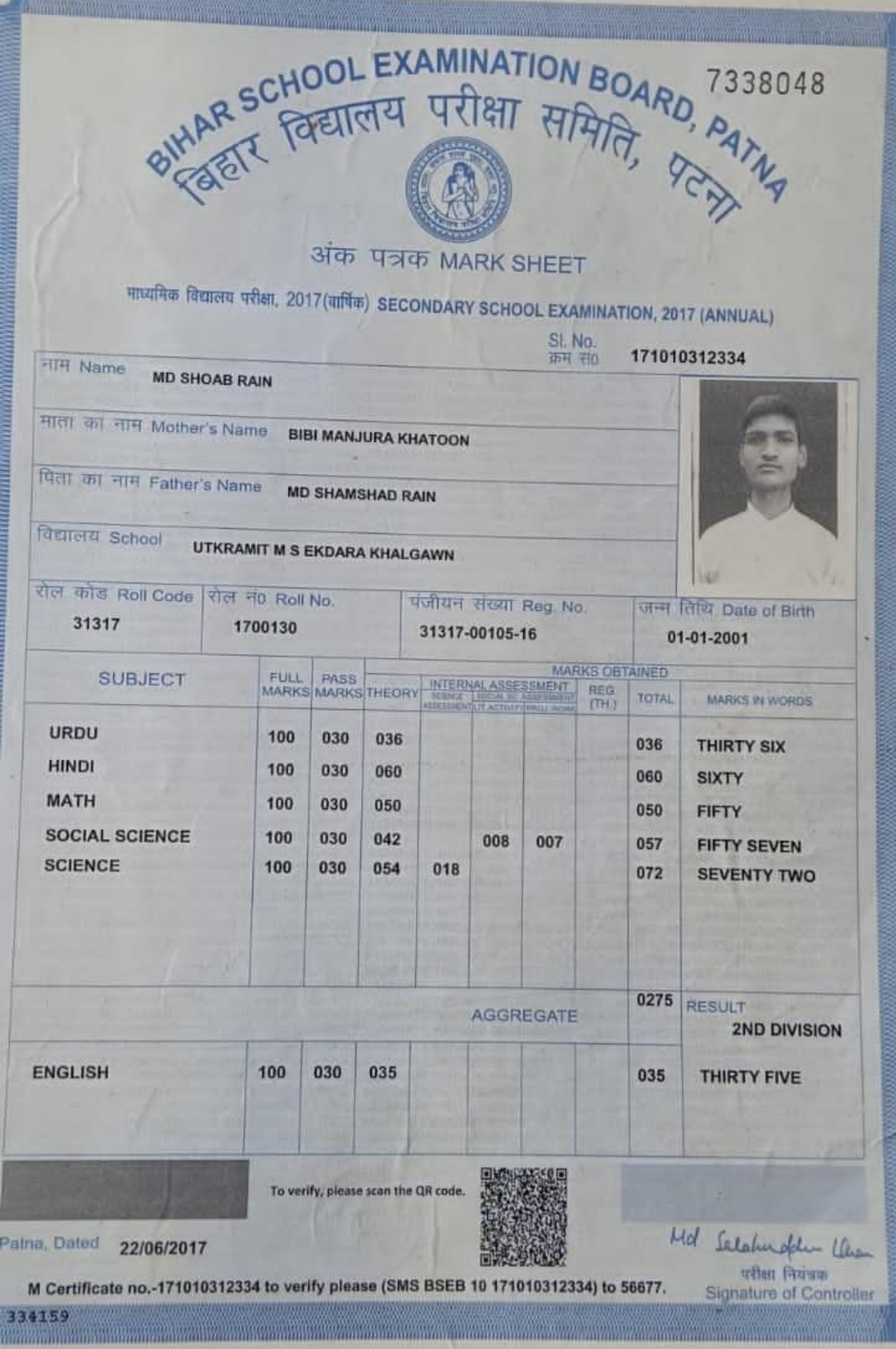 | Exam | Full Marks | Pass Marks | Marks Obtained |