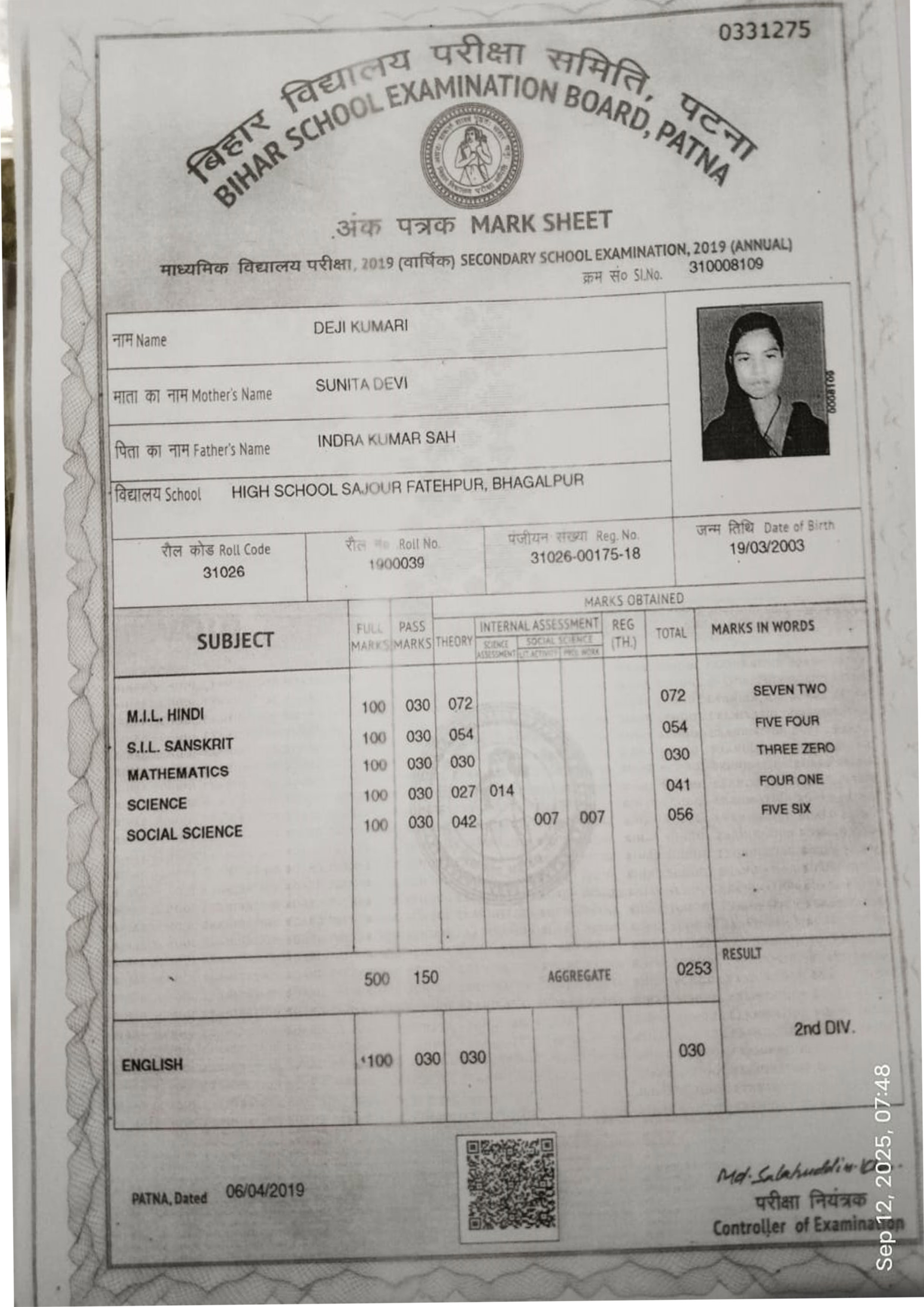 | Exam | Full Marks | Pass Marks | Marks Obtained |