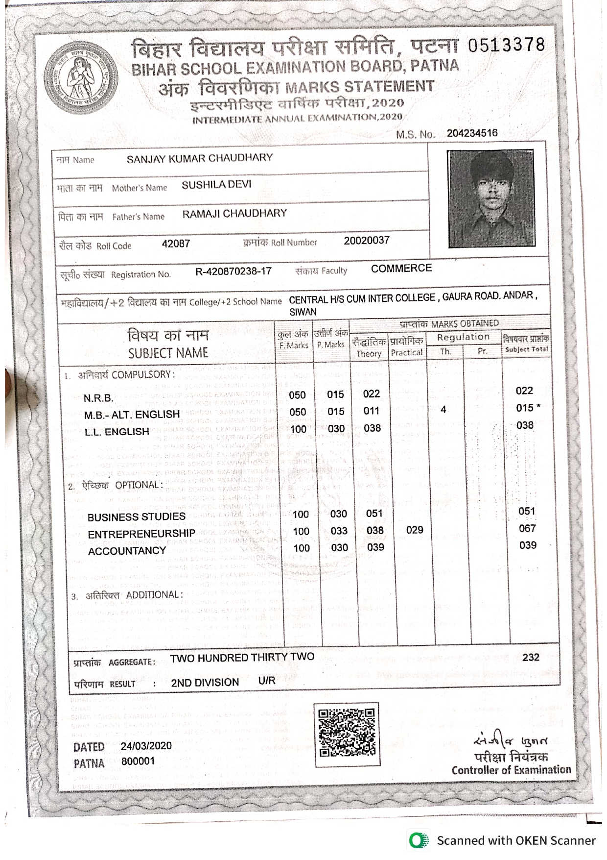 | Exam | Full Marks | Pass Marks | Marks Obtained |