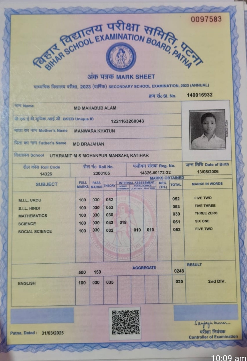 | Exam | Full Marks | Pass Marks | Marks Obtained |