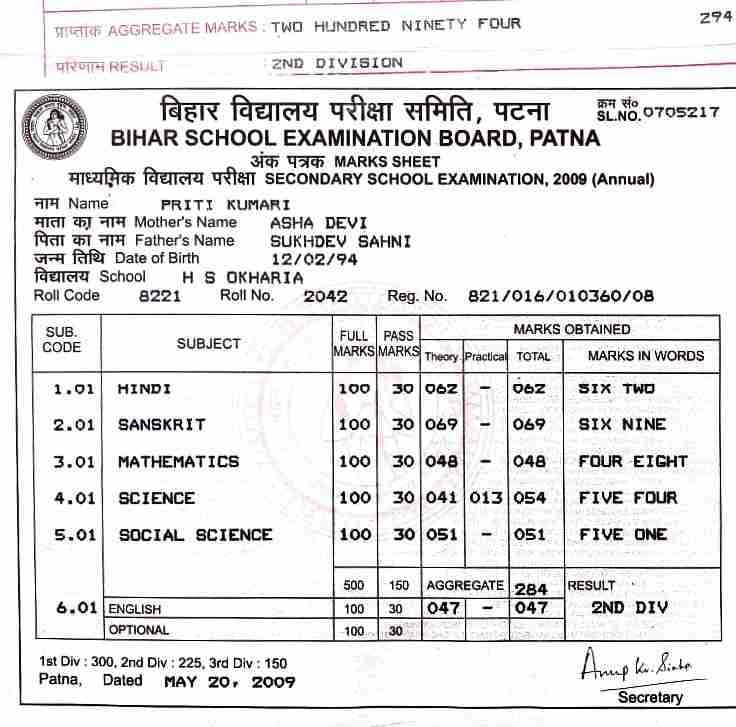 | Exam | Full Marks | Pass Marks | Marks Obtained |