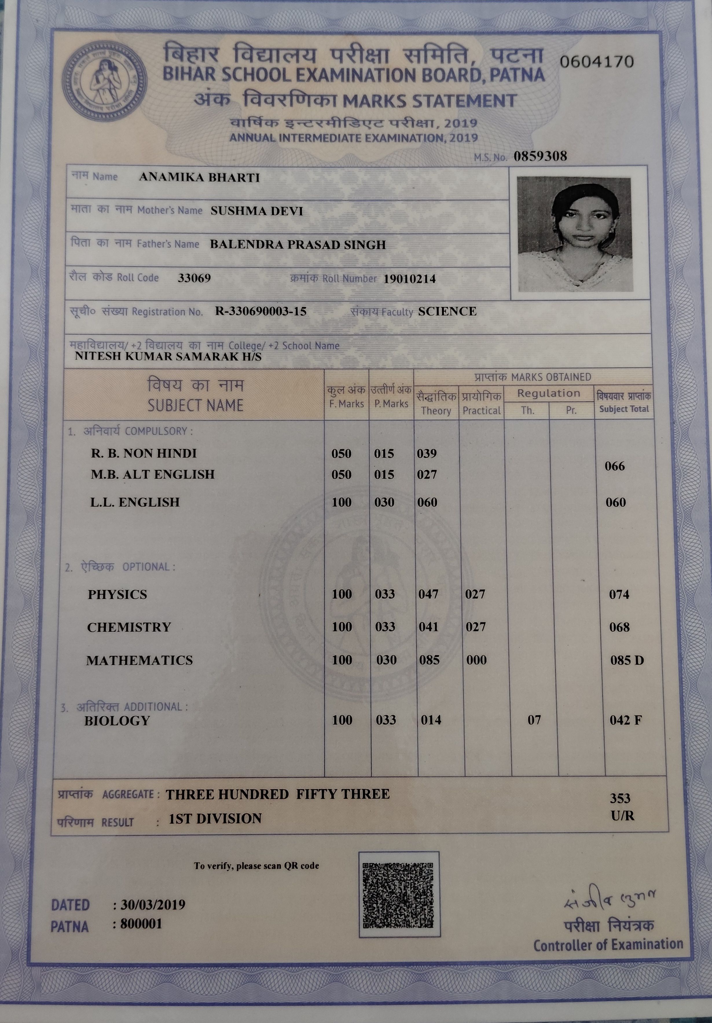 | Exam | Full Marks | Pass Marks | Marks Obtained |