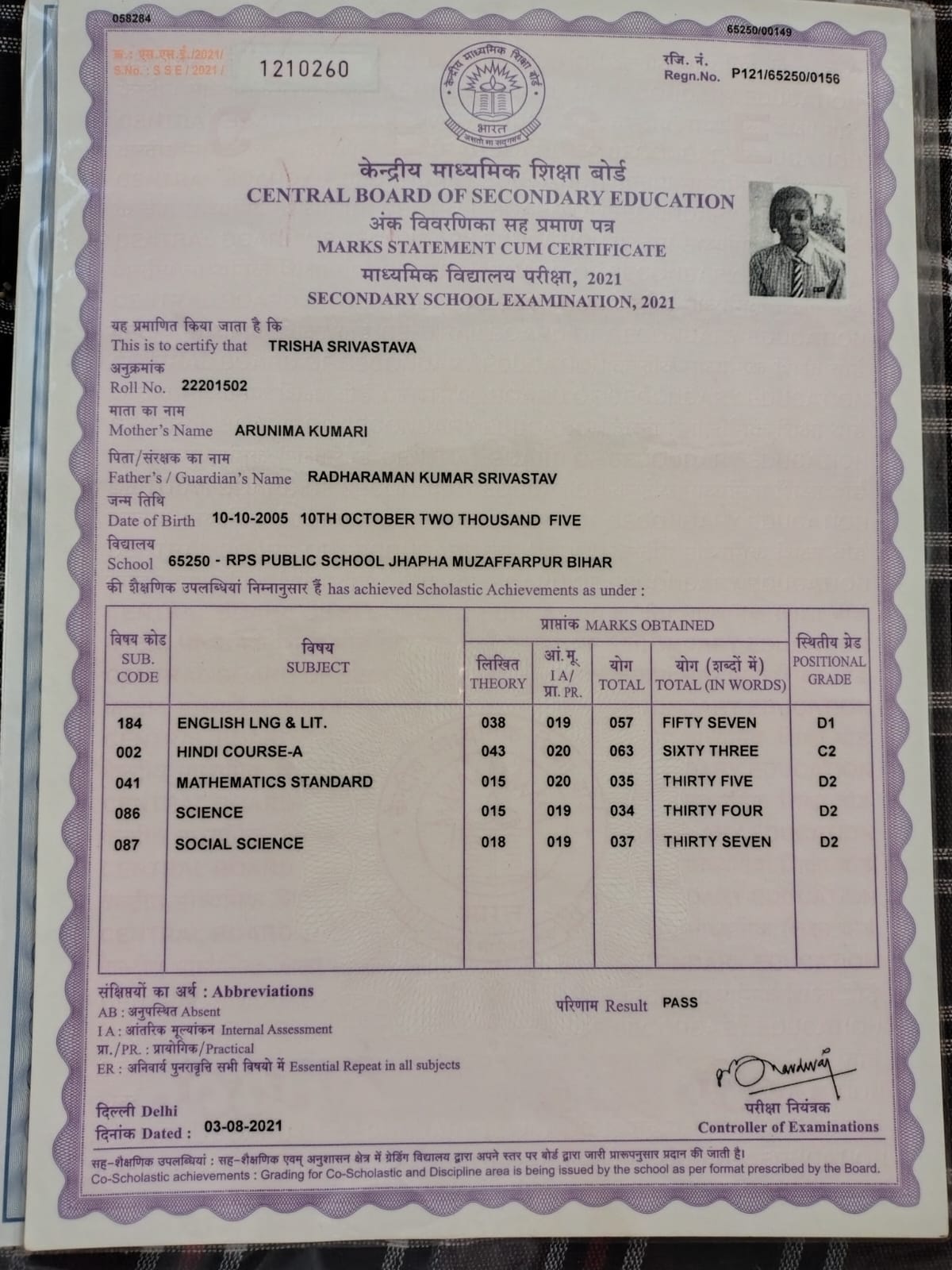 | Exam | Full Marks | Pass Marks | Marks Obtained |