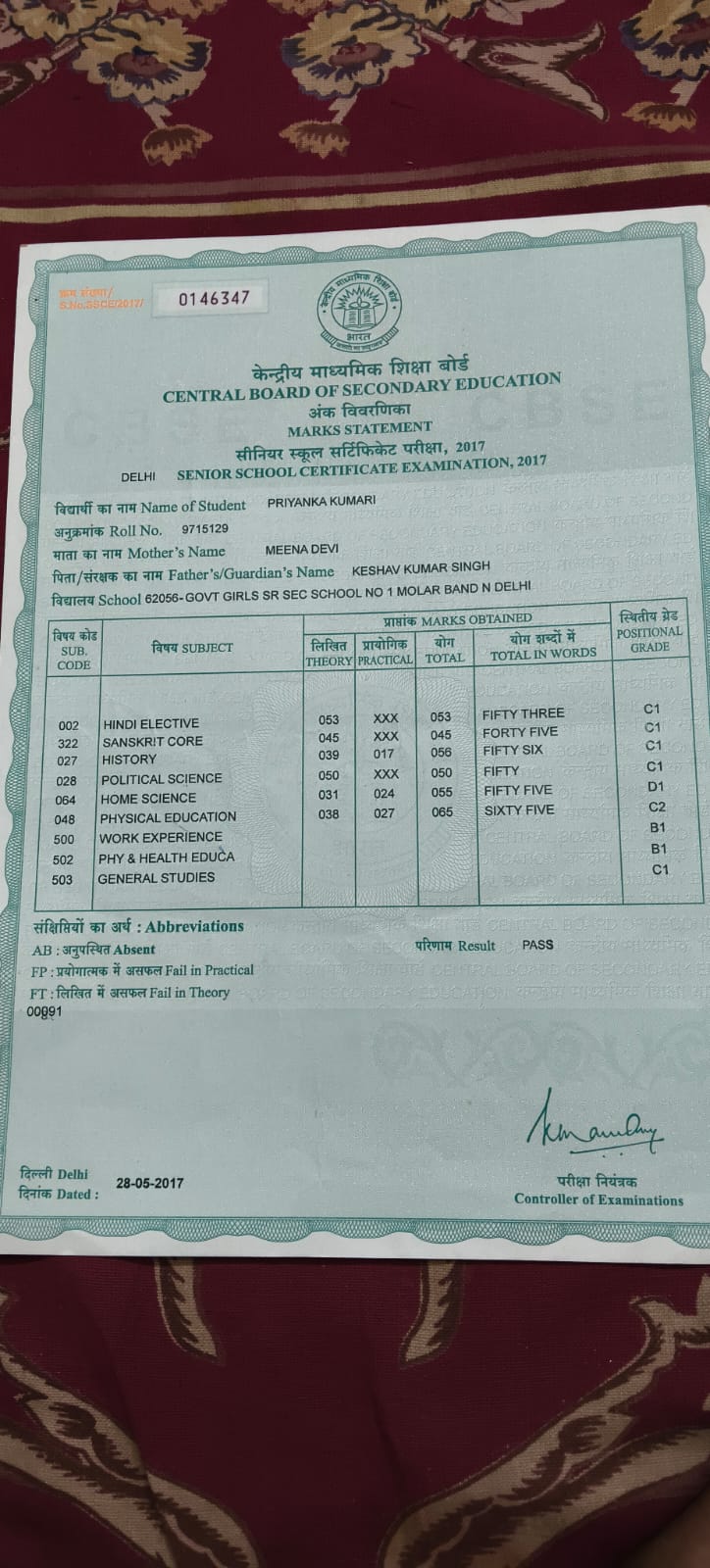 | Exam | Full Marks | Pass Marks | Marks Obtained |