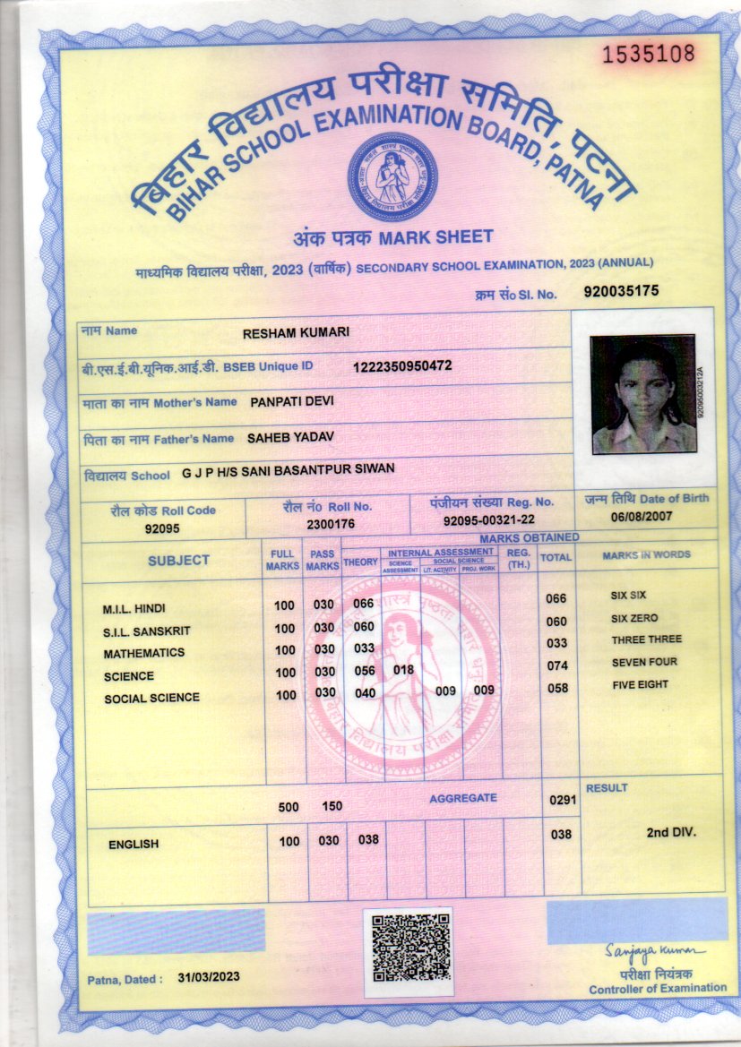 | Exam | Full Marks | Pass Marks | Marks Obtained |