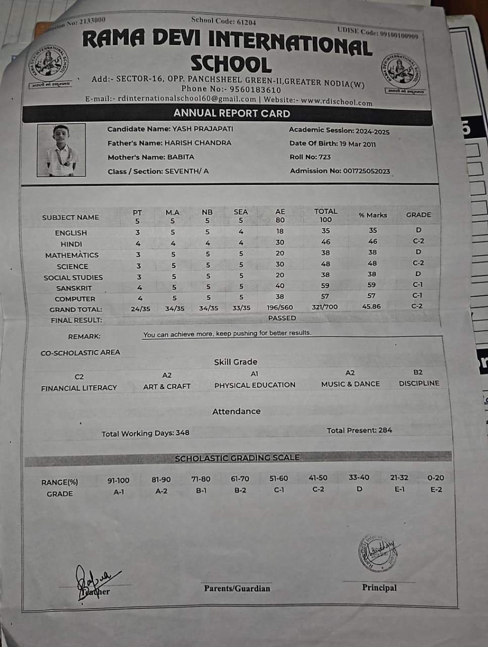 | Exam | Full Marks | Pass Marks | Marks Obtained |