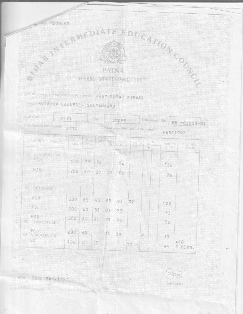 | Exam | Full Marks | Pass Marks | Marks Obtained |