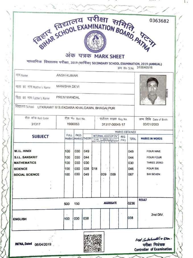| Exam | Full Marks | Pass Marks | Marks Obtained |