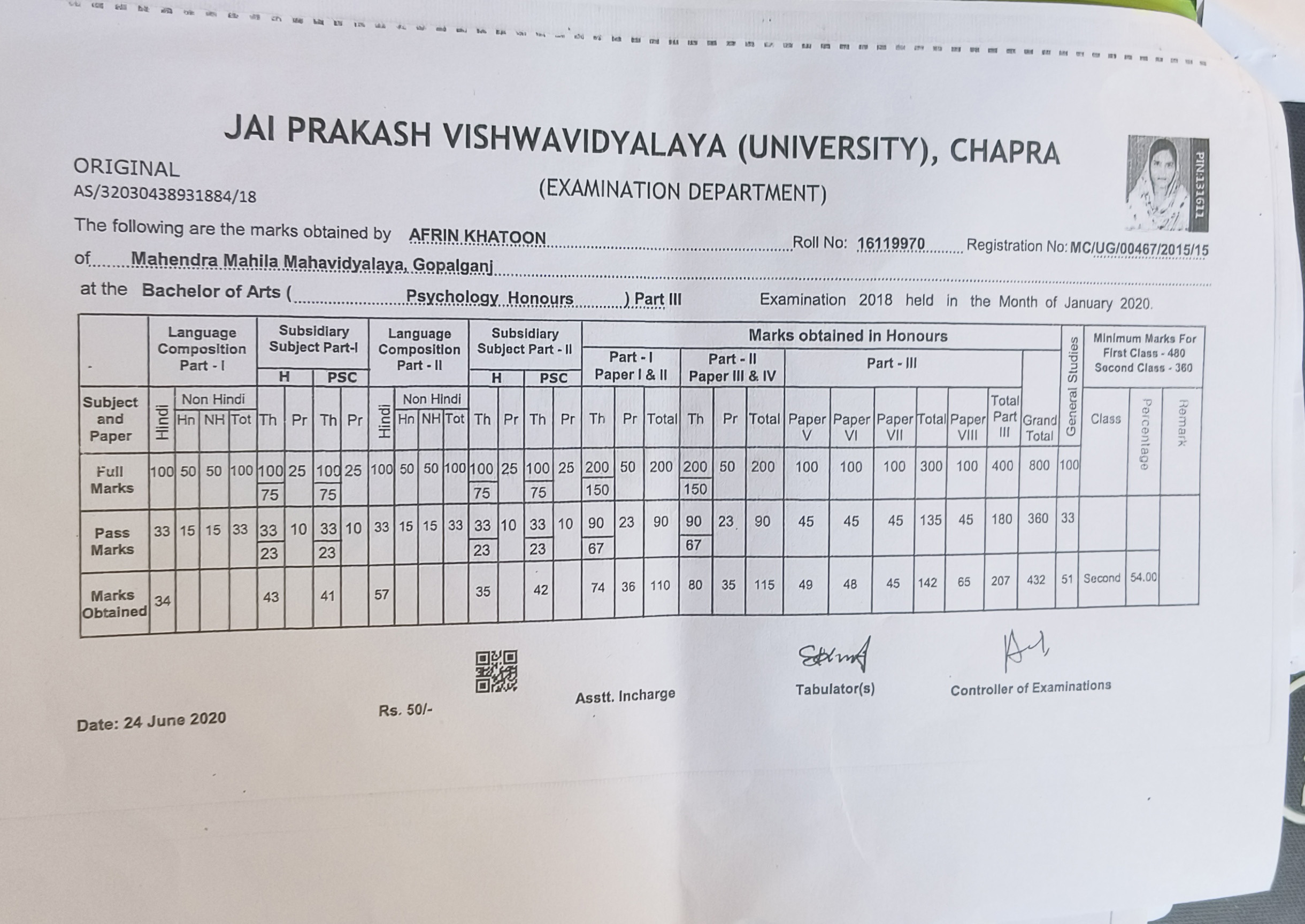 | Exam | Full Marks | Pass Marks | Marks Obtained |