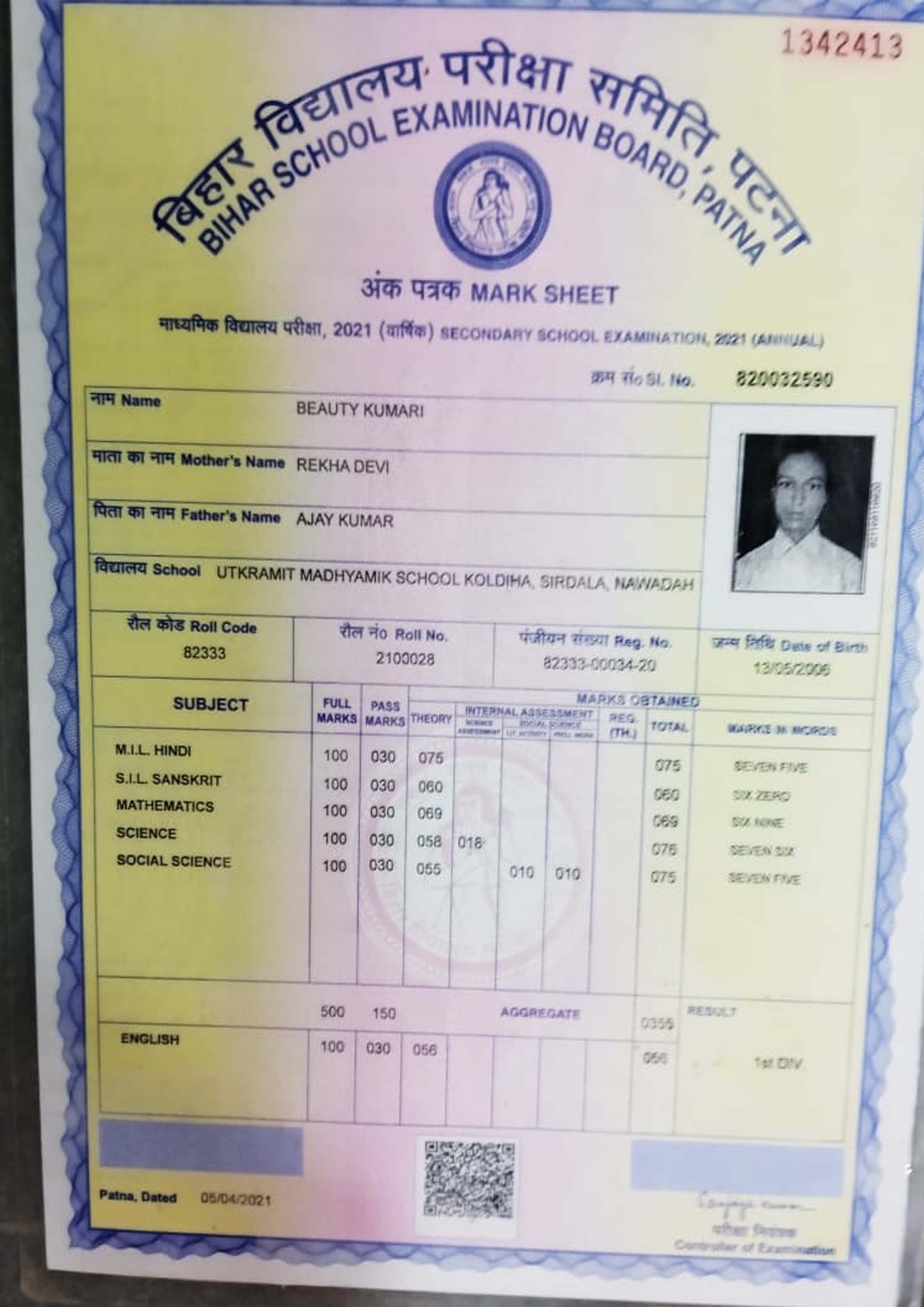 | Exam | Full Marks | Pass Marks | Marks Obtained |