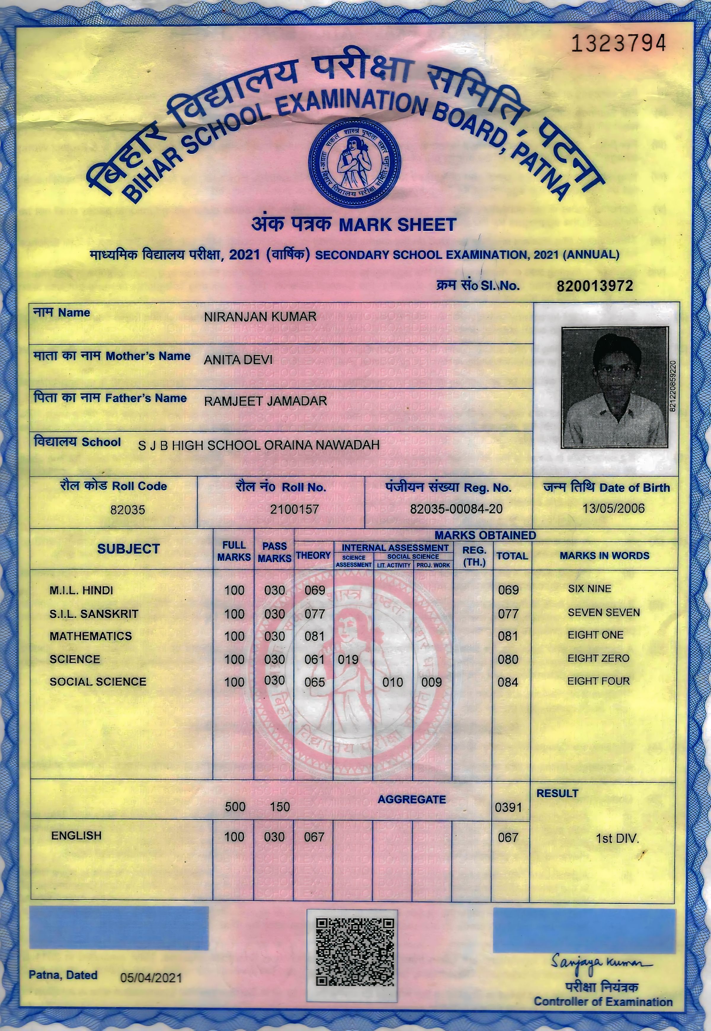 | Exam | Full Marks | Pass Marks | Marks Obtained |