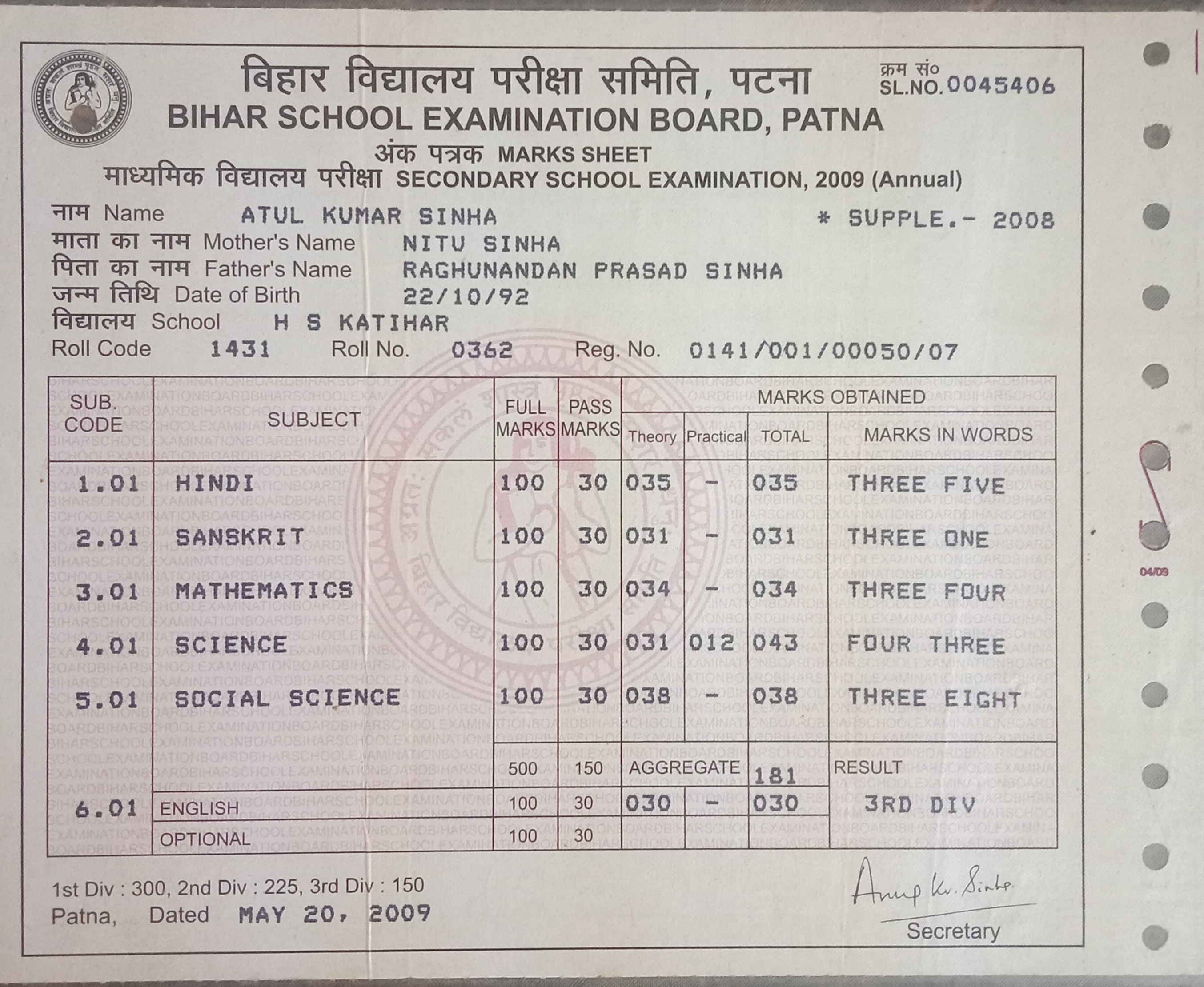 | : | Raghunandan Prasad Sinha | |