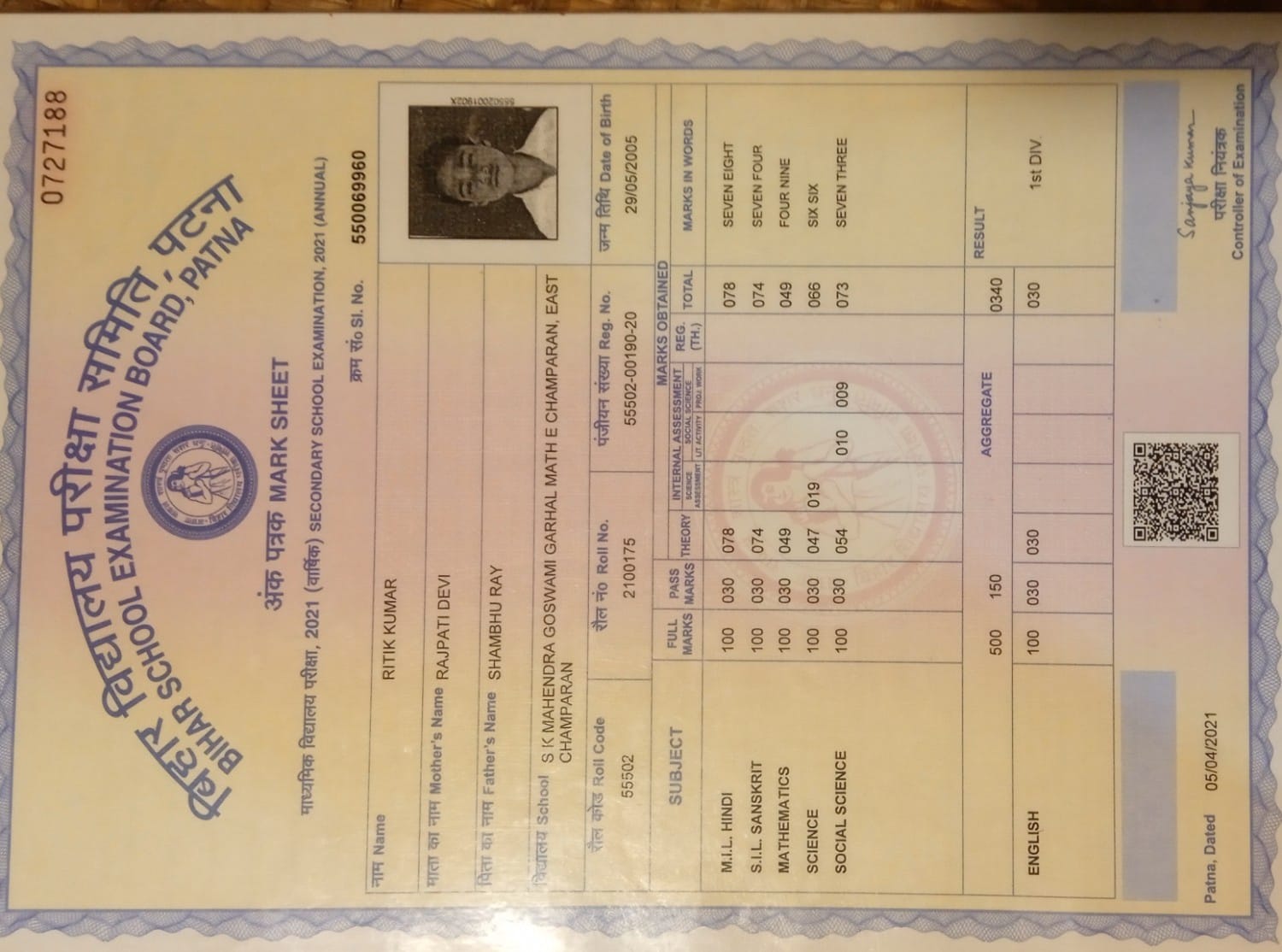 | Exam | Full Marks | Pass Marks | Marks Obtained |