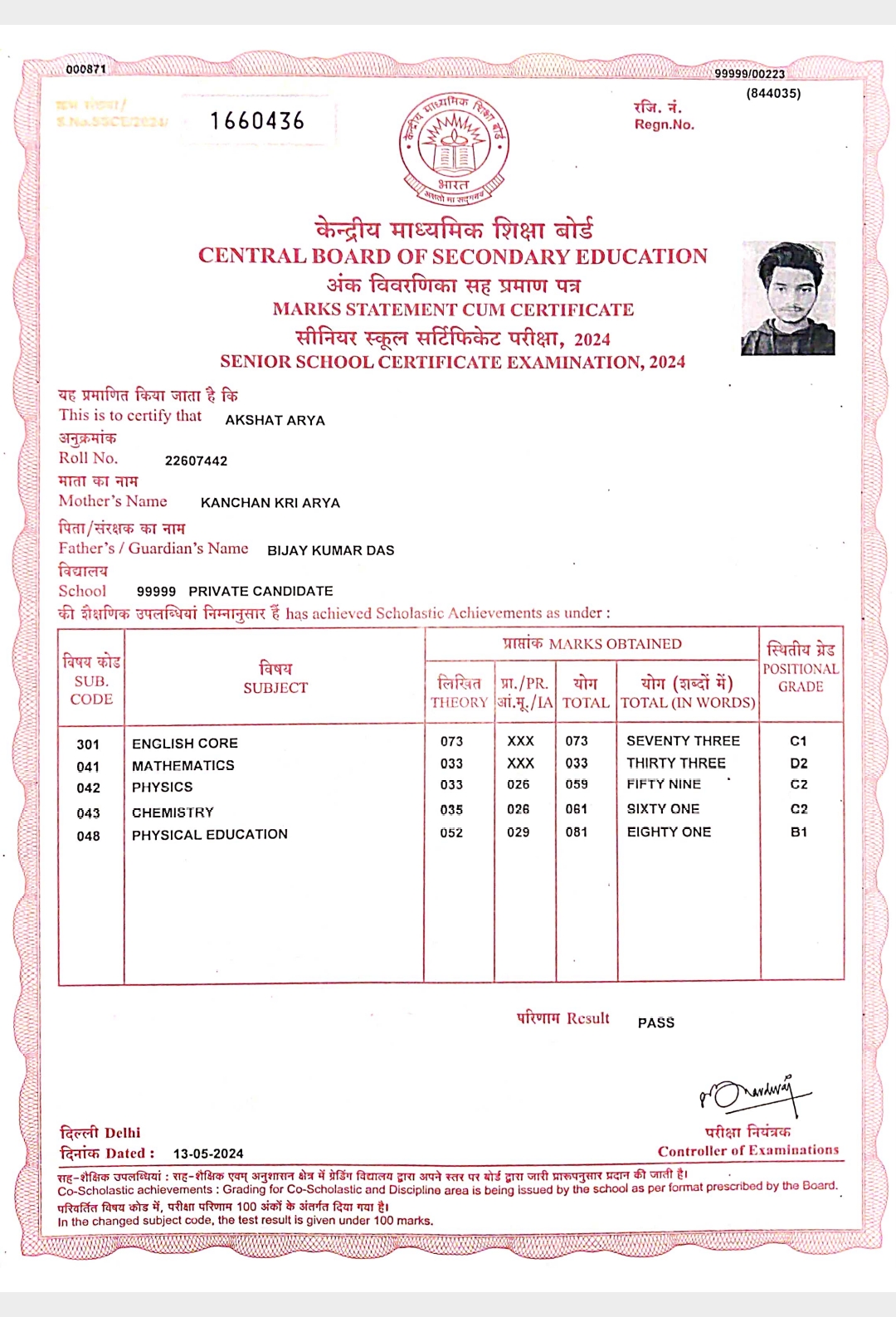 | Exam | Full Marks | Pass Marks | Marks Obtained |