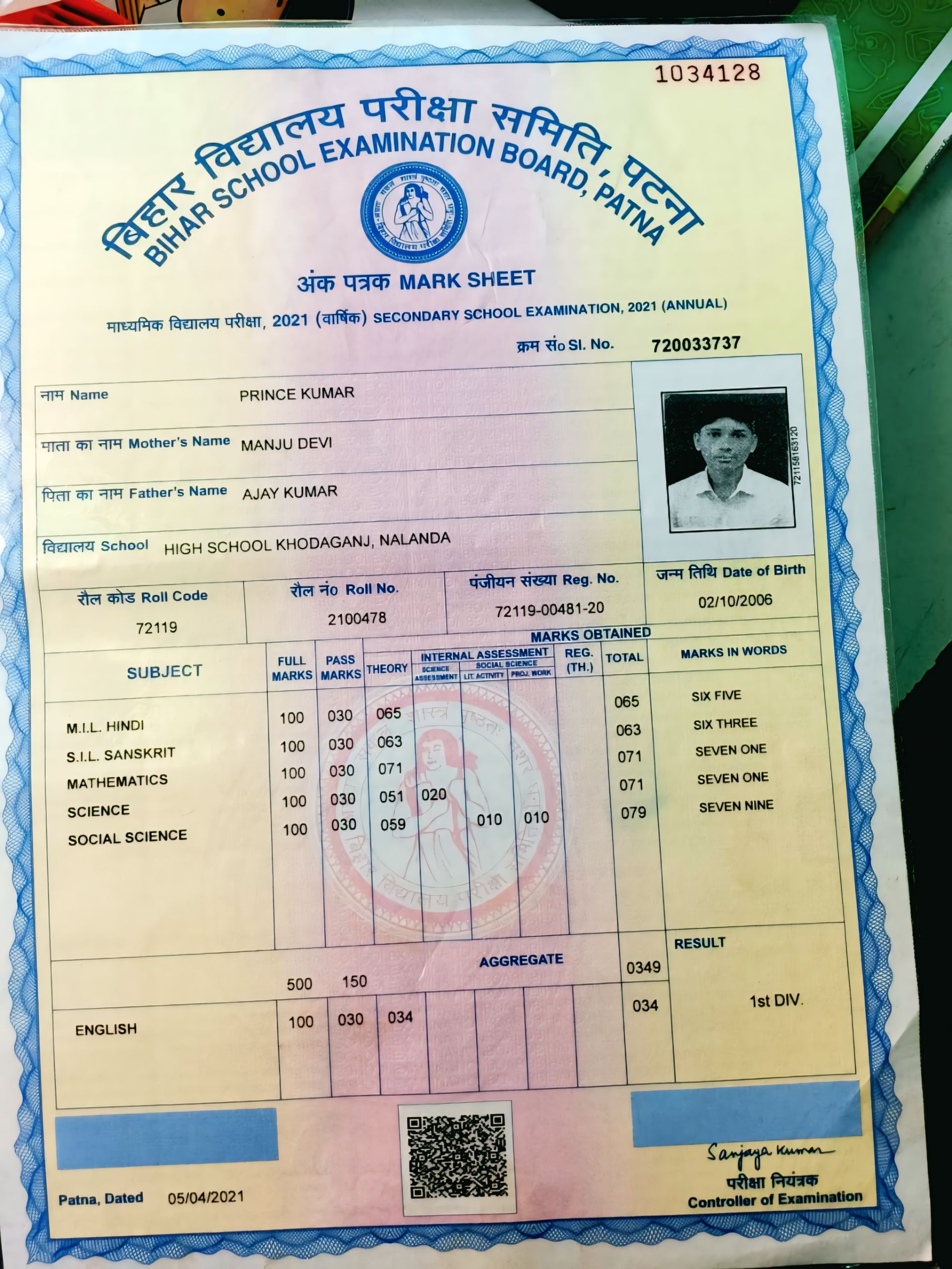 | Exam | Full Marks | Pass Marks | Marks Obtained |
