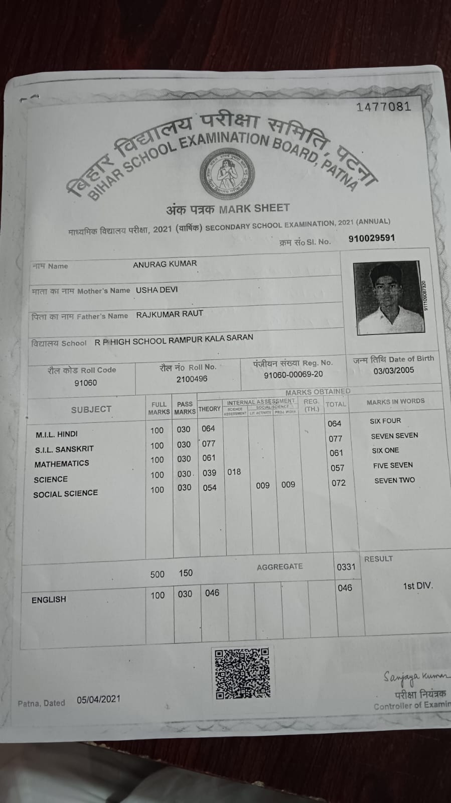 | Exam | Full Marks | Pass Marks | Marks Obtained |