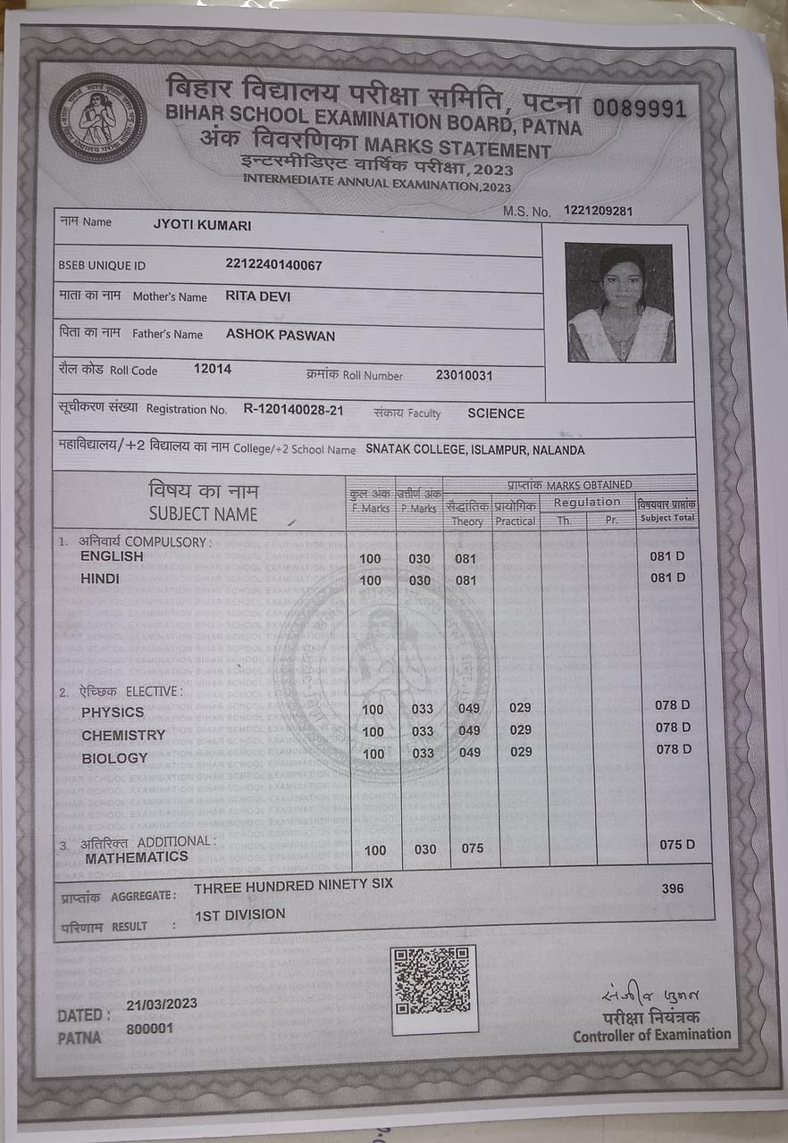 | Exam | Full Marks | Pass Marks | Marks Obtained |