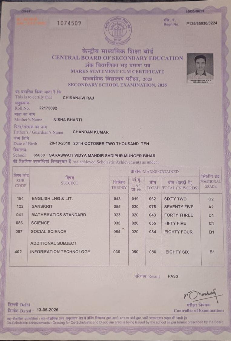 | Exam | Full Marks | Pass Marks | Marks Obtained |