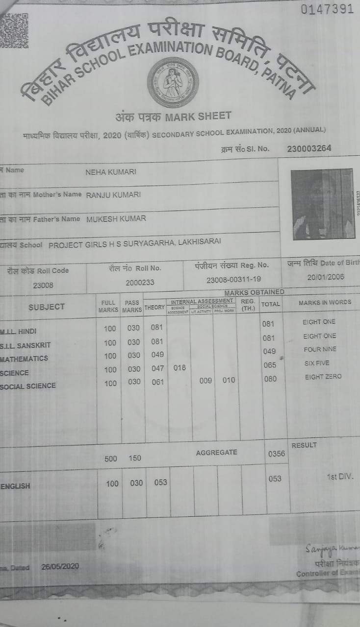 | Exam | Full Marks | Pass Marks | Marks Obtained |