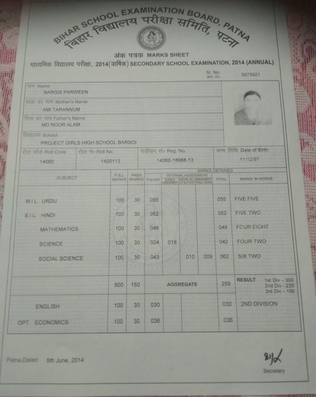 | : | Matric | |