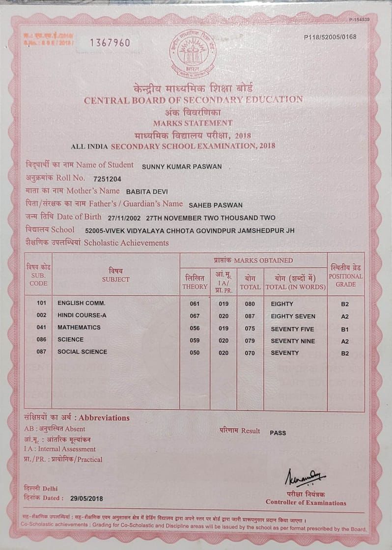 | Exam | Full Marks | Pass Marks | Marks Obtained |