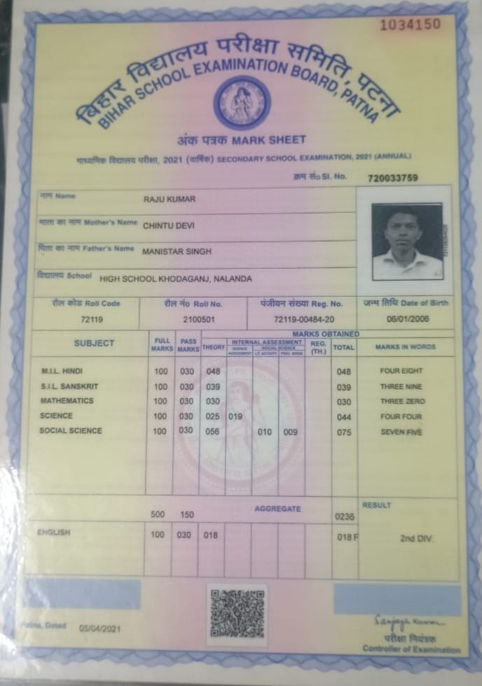 | Exam | Full Marks | Pass Marks | Marks Obtained |
