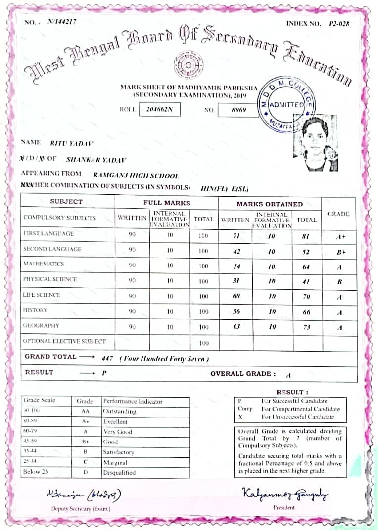 | Exam | Full Marks | Pass Marks | Marks Obtained |