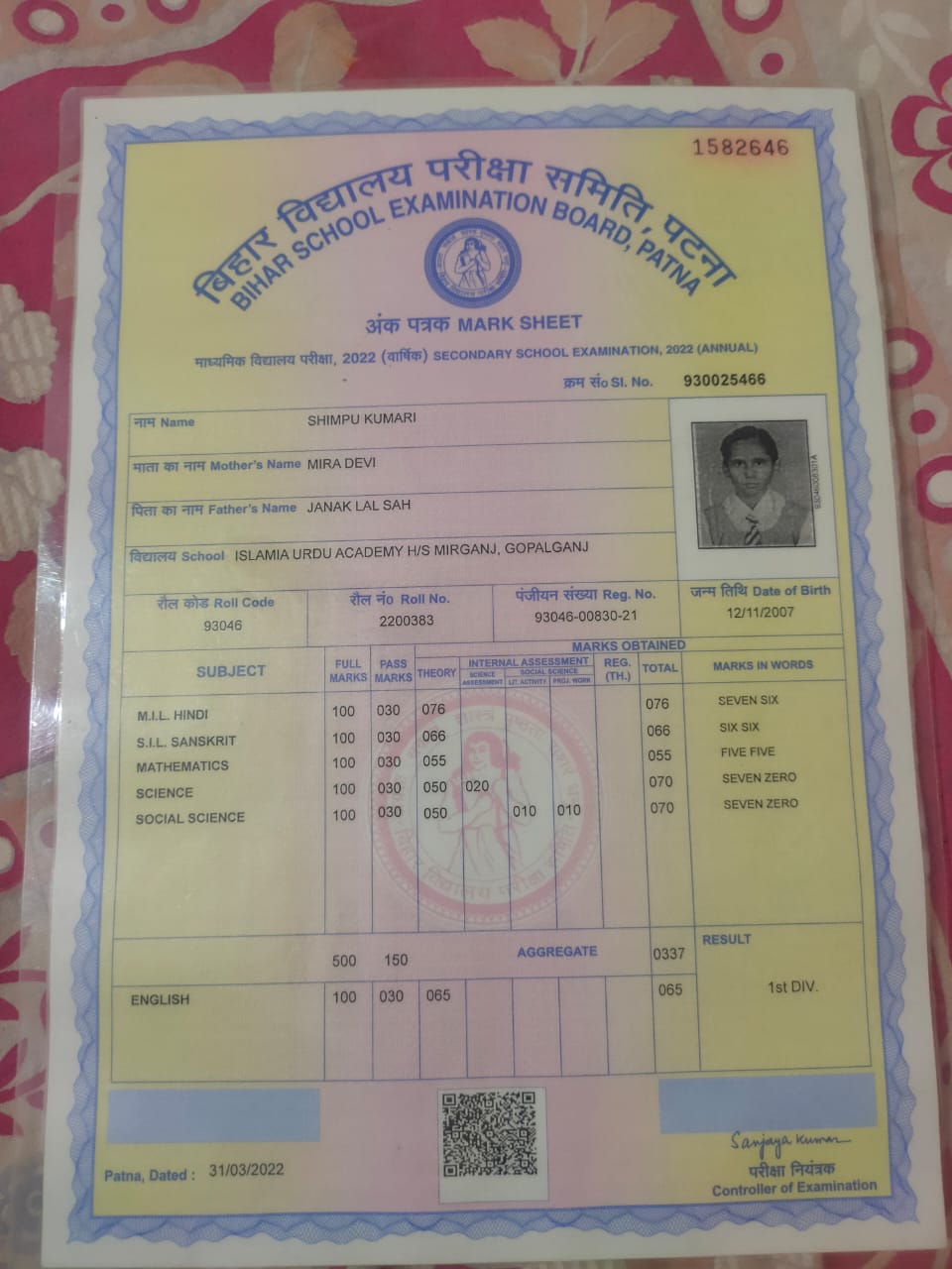 | Exam | Full Marks | Pass Marks | Marks Obtained |