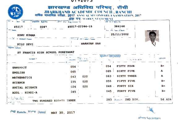 | Exam | Full Marks | Pass Marks | Marks Obtained |