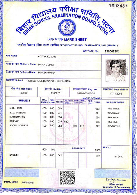 | Exam | Full Marks | Pass Marks | Marks Obtained |