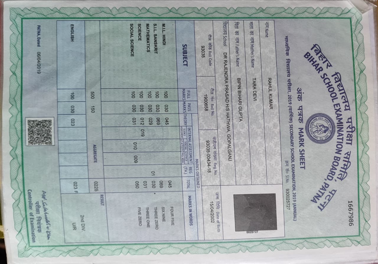 | Exam | Full Marks | Pass Marks | Marks Obtained |