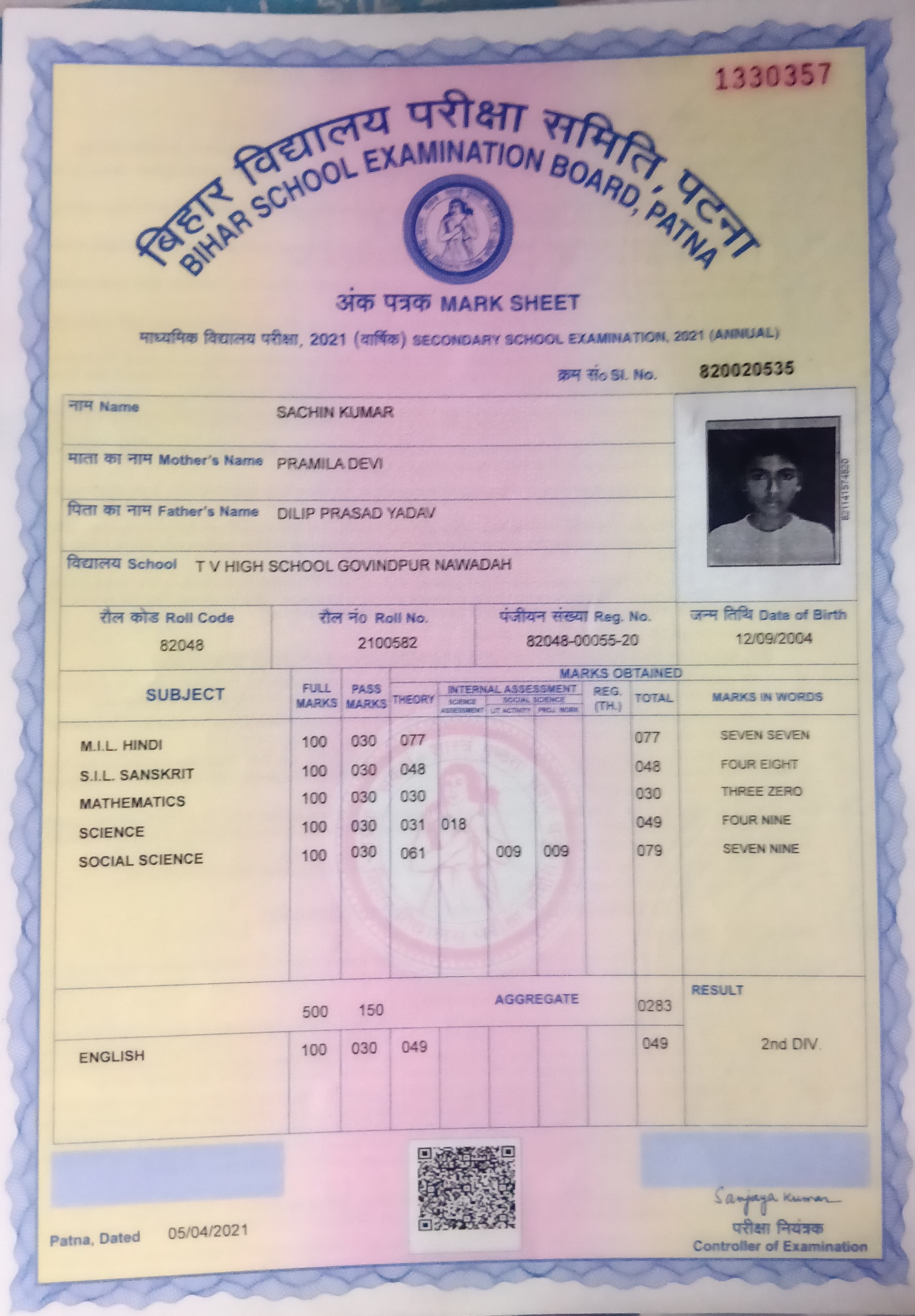 | Exam | Full Marks | Pass Marks | Marks Obtained |