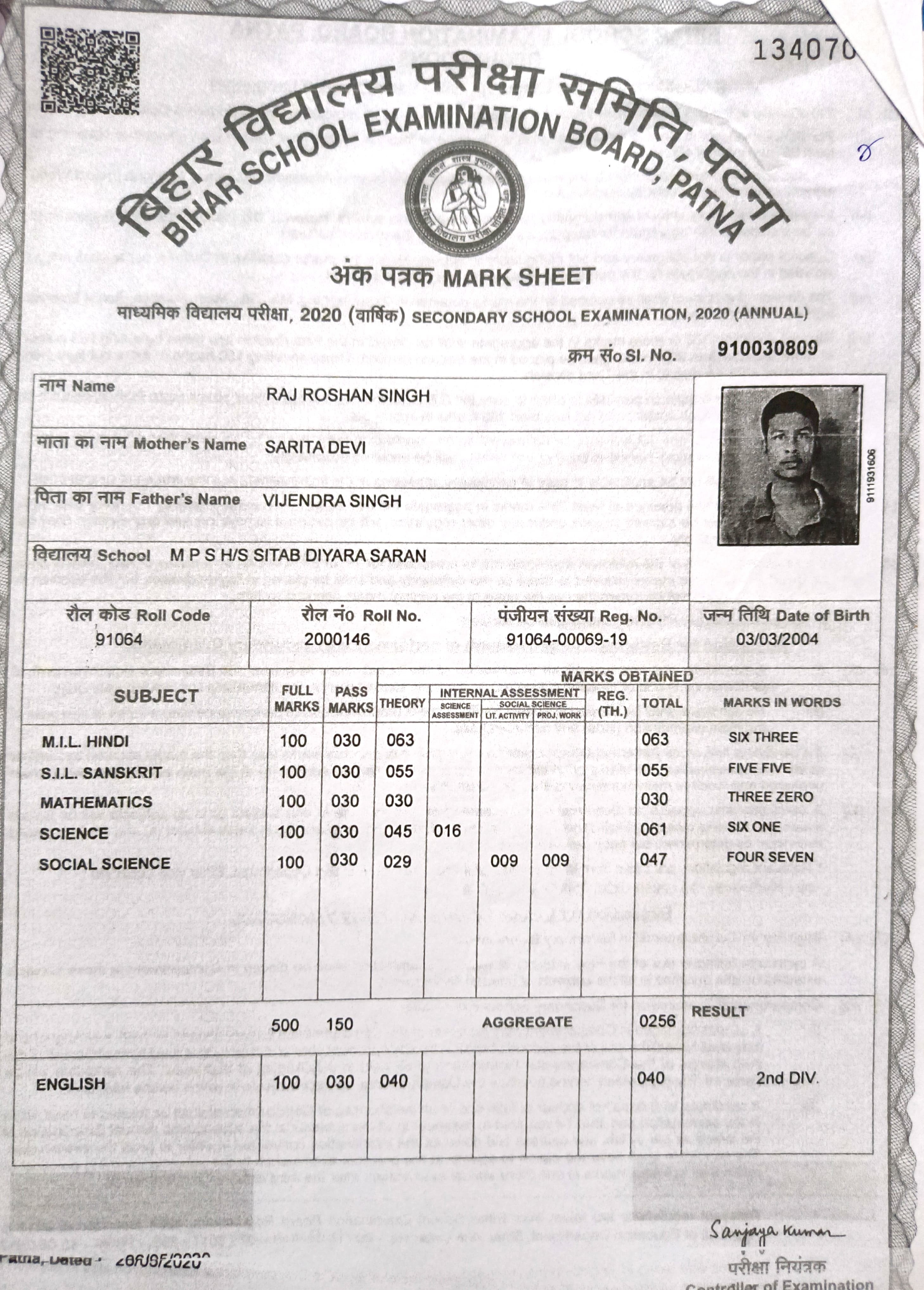 | Exam | Full Marks | Pass Marks | Marks Obtained |