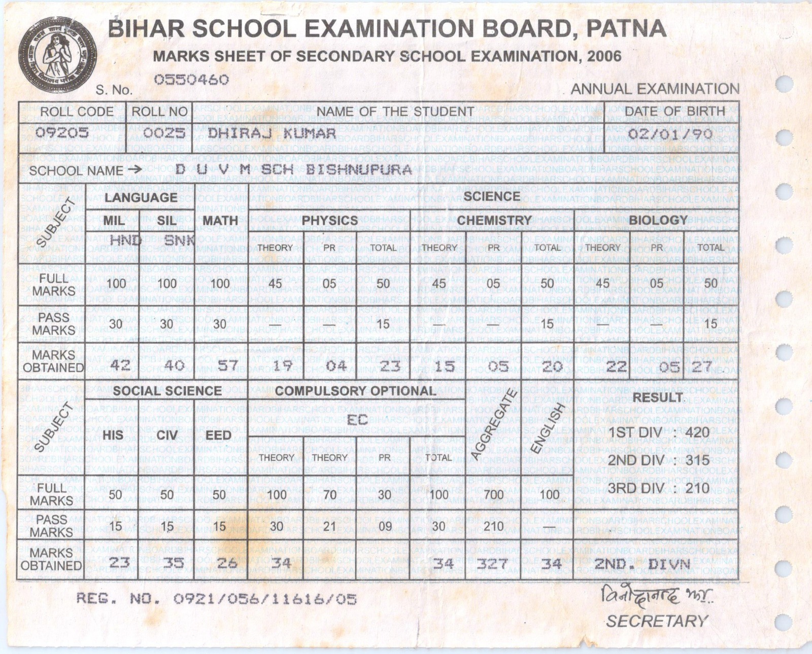 | Exam | Full Marks | Pass Marks | Marks Obtained |