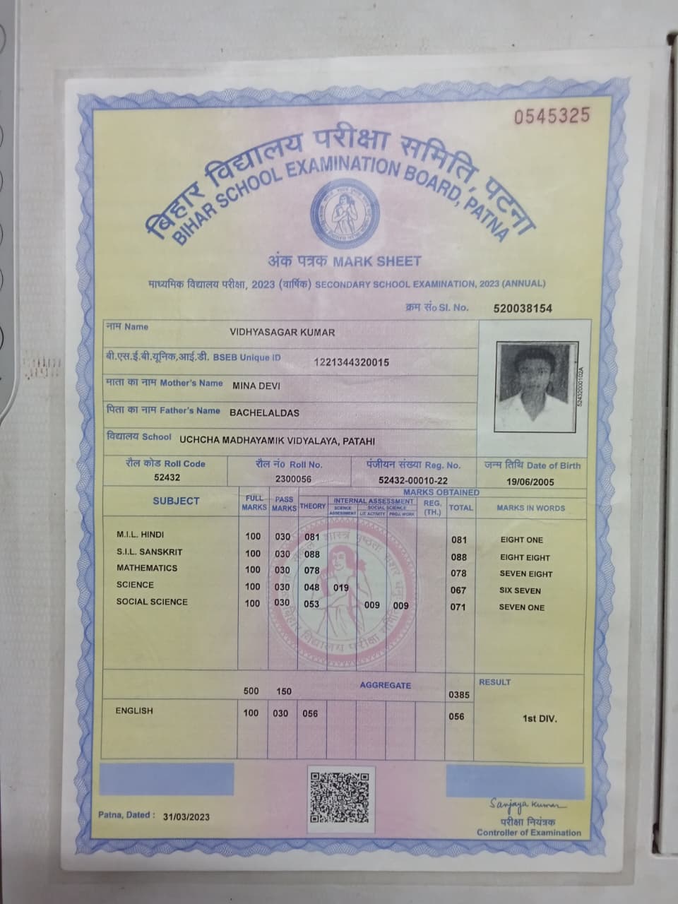 | Exam | Full Marks | Pass Marks | Marks Obtained |