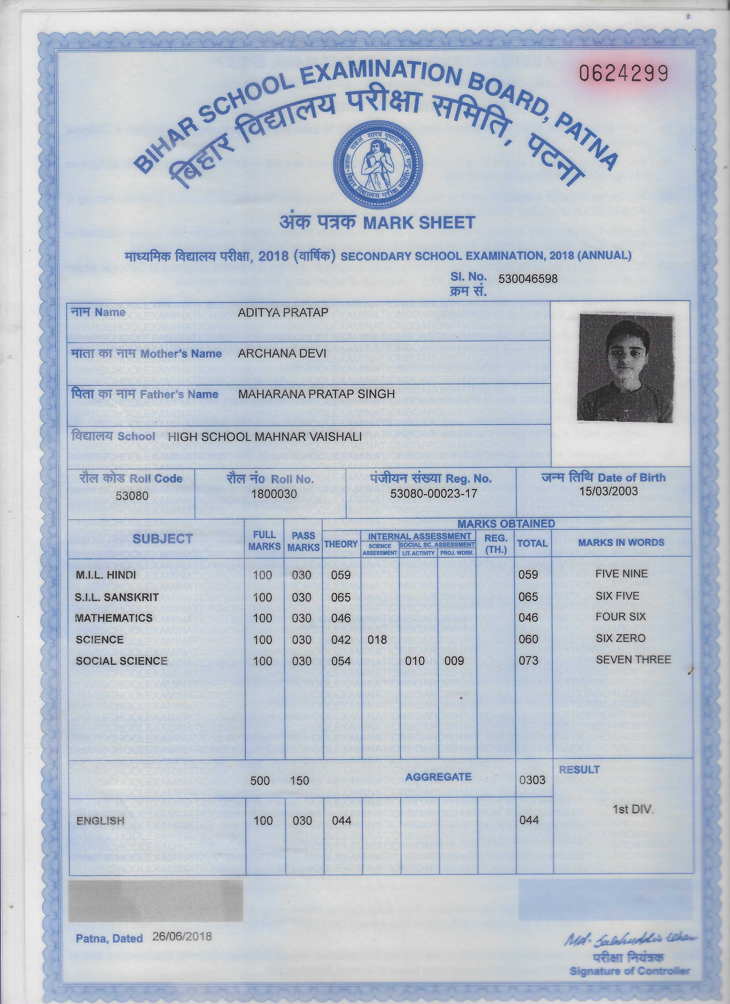 | Exam | Full Marks | Pass Marks | Marks Obtained |