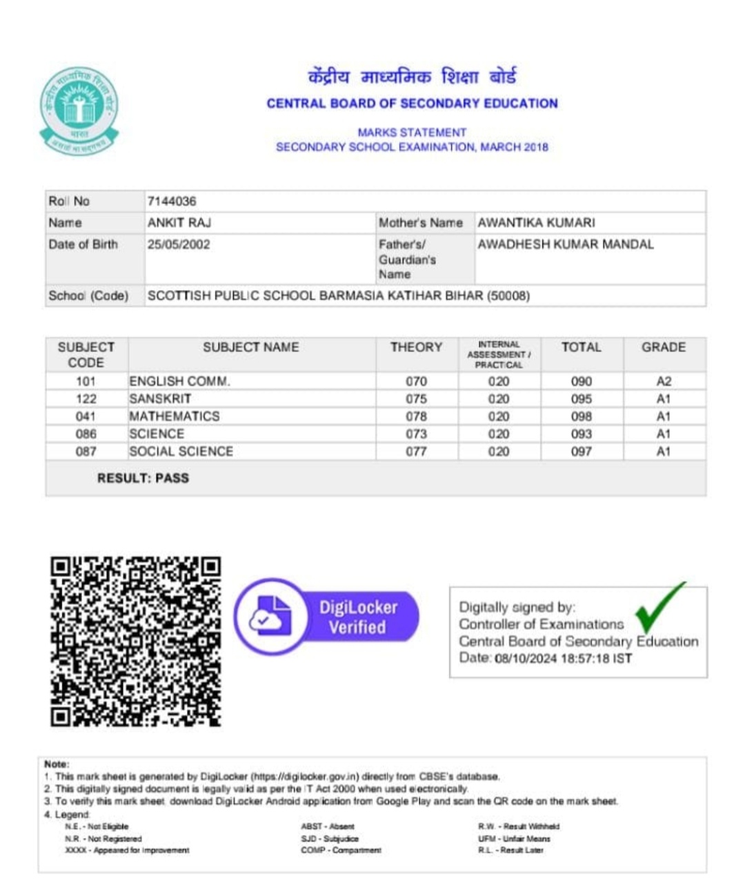 | Exam | Full Marks | Pass Marks | Marks Obtained |
