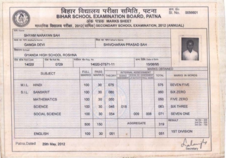 | Exam | Full Marks | Pass Marks | Marks Obtained |
