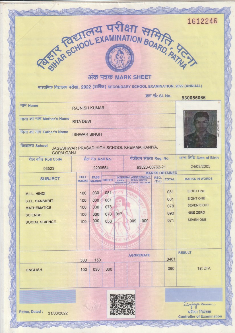 | Exam | Full Marks | Pass Marks | Marks Obtained |