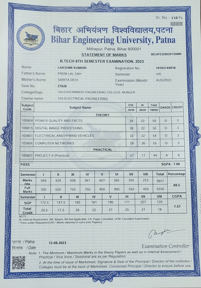 | Exam | Full Marks | Pass Marks | Marks Obtained |