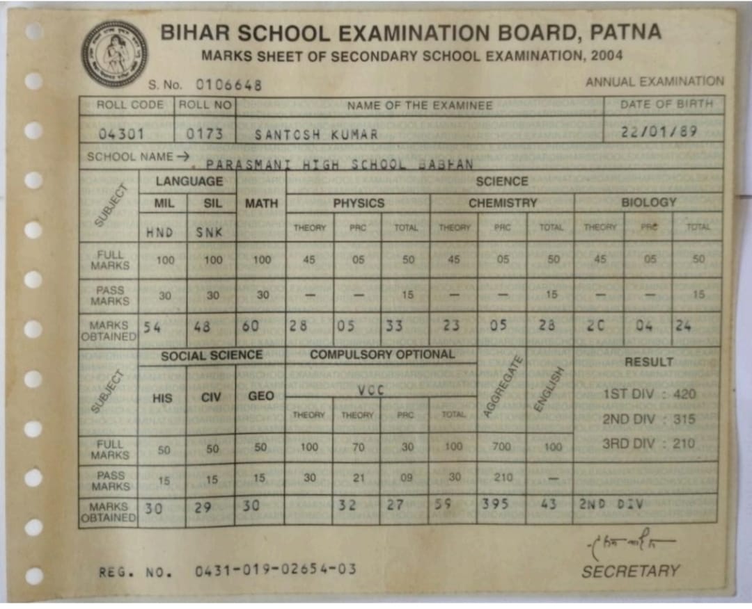 | Exam | Full Marks | Pass Marks | Marks Obtained |