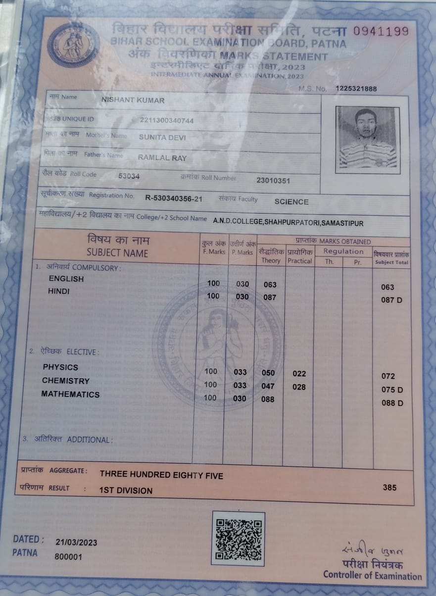 | Exam | Full Marks | Pass Marks | Marks Obtained |
