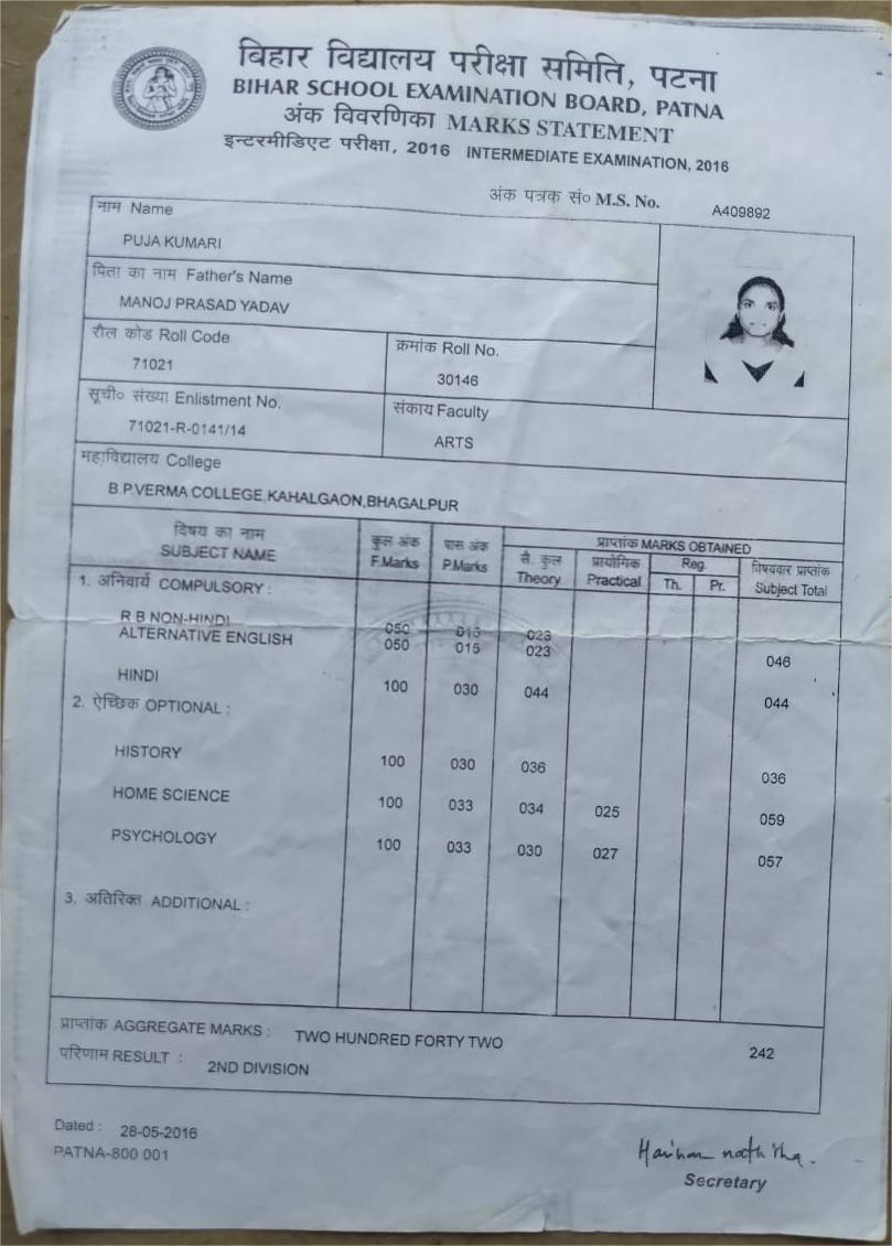 | Exam | Full Marks | Pass Marks | Marks Obtained |