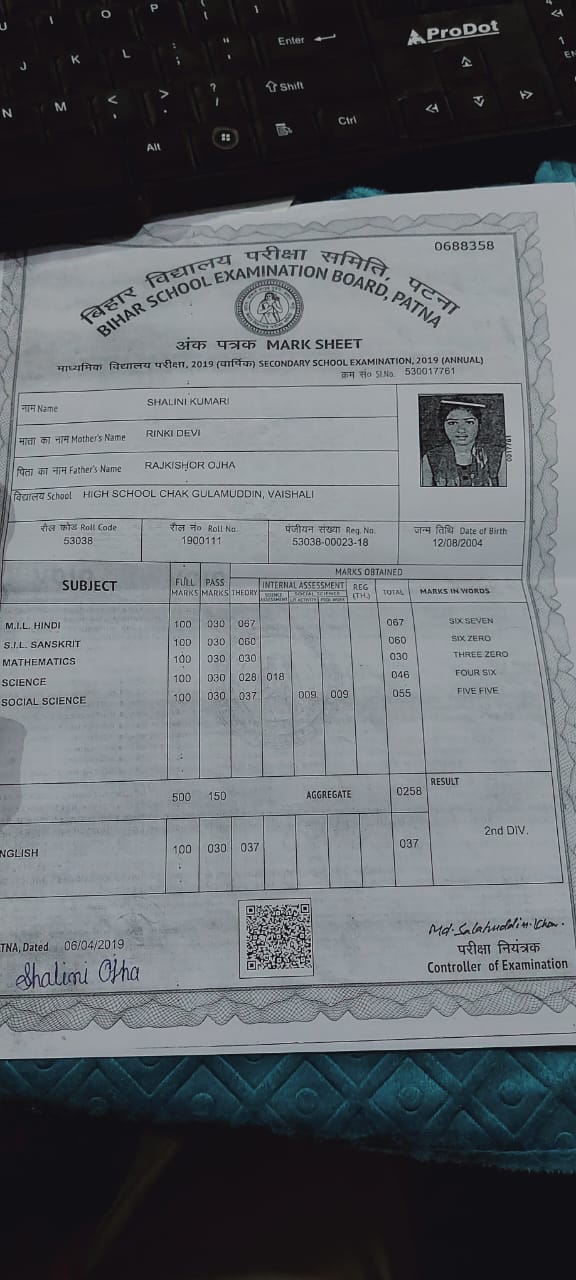 | Exam | Full Marks | Pass Marks | Marks Obtained |