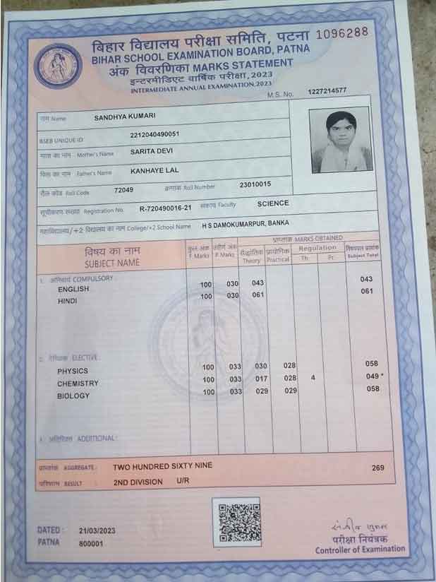| Exam | Full Marks | Pass Marks | Marks Obtained |