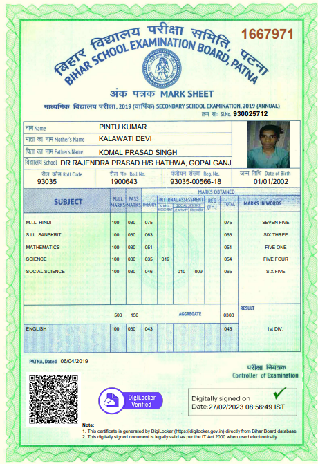 | Exam | Full Marks | Pass Marks | Marks Obtained |